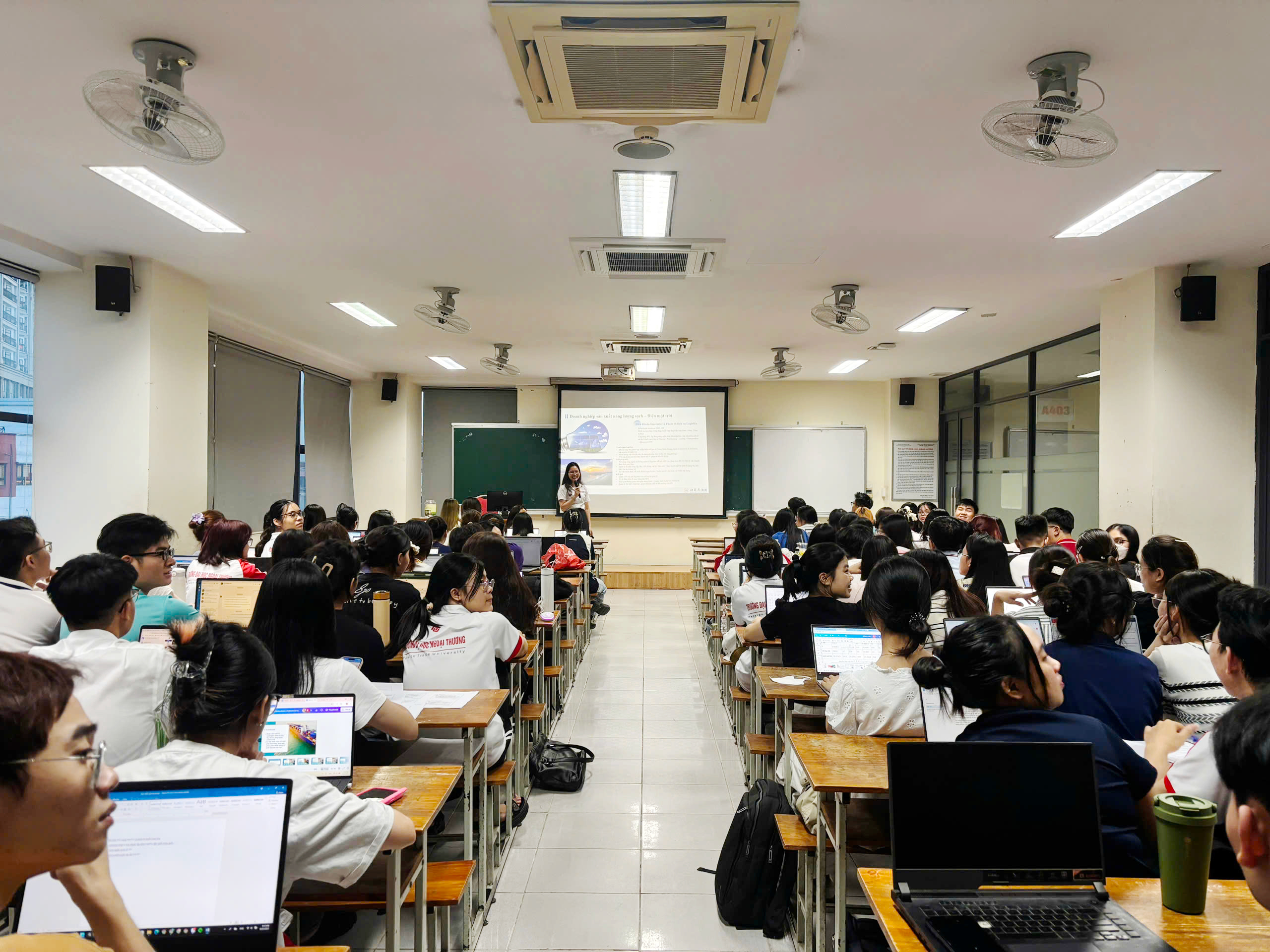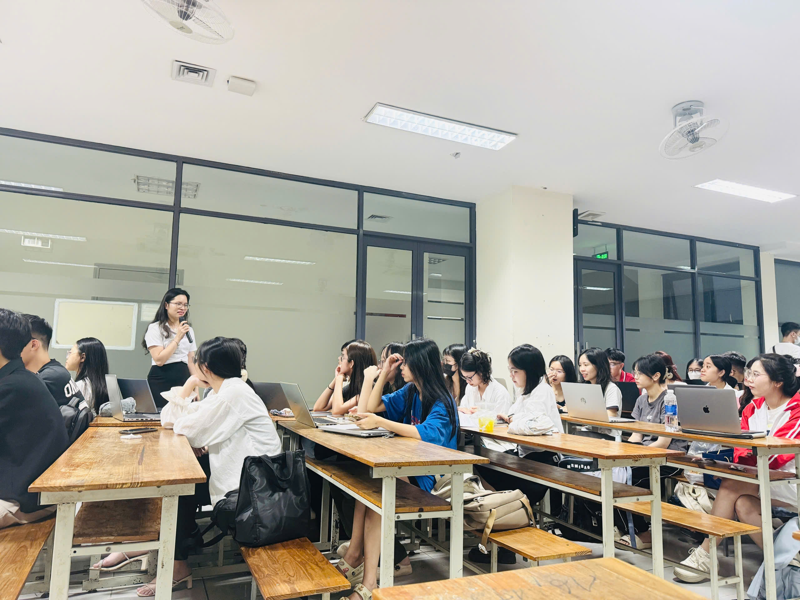 Không chỉ dừng ở kiến thức chuyên môn, chị còn chia sẻ những trải nghiệm làm việc thực tế, kinh nghiệm nghề nghiệp và đưa ra những lời khuyên định hướng hữu ích dành cho sinh viên trong việc xây dựng lộ trình nghề nghiệp.