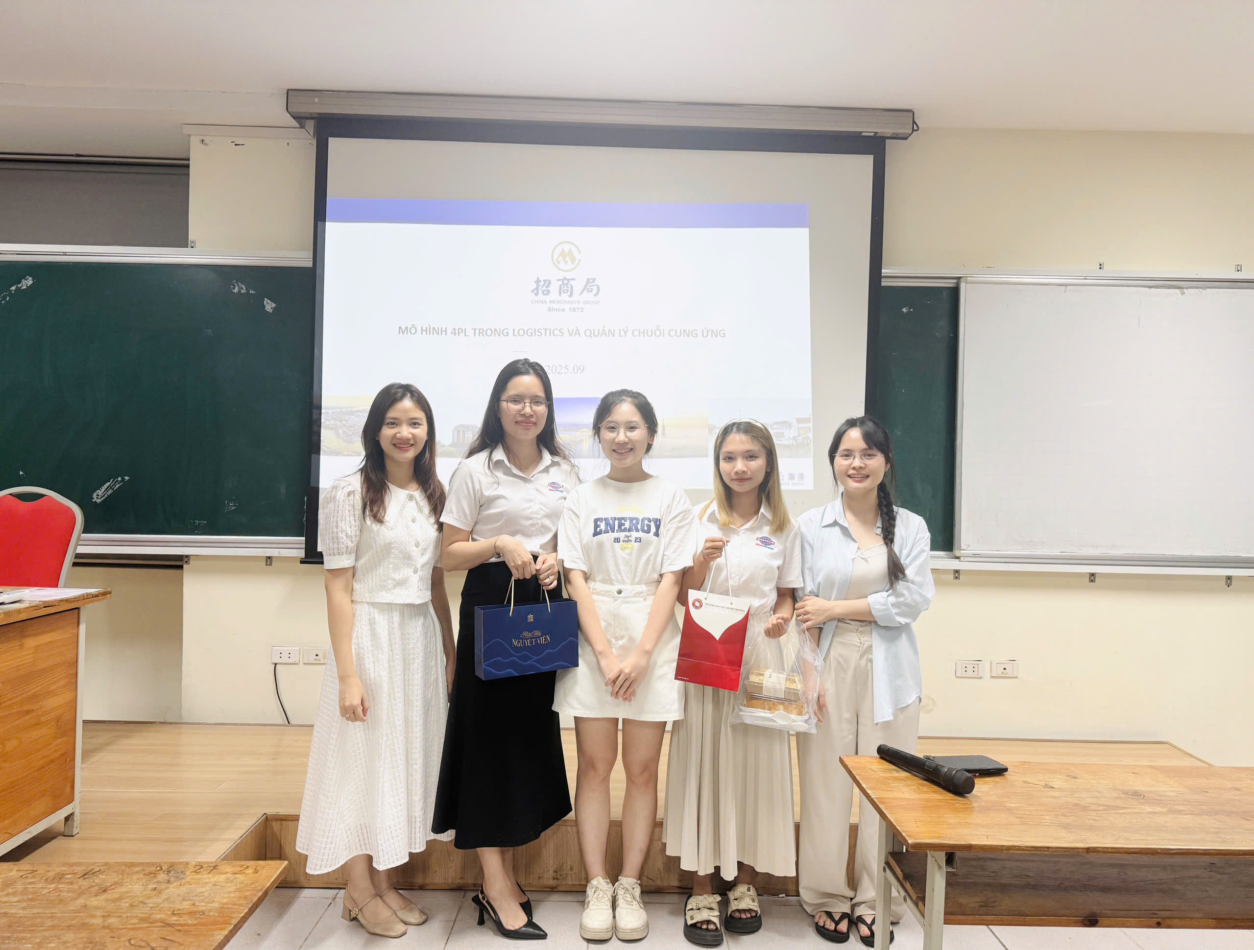 Kết thúc buổi chia sẻ, đại diện giảng viên và sinh viên đã gửi lời cảm ơn trân trọng tới chuyên gia từ Công ty TNHH Sinotrans Việt Nam Logistics vì những chia sẻ tâm huyết và bổ ích. Buổi chia sẻ không chỉ mở rộng kiến thức chuyên môn mà còn củng cố kiến thức thực tế, tiếp thêm động lực để sinh viên tự tin hơn trên con đường học tập và phát triển nghề nghiệp tương lai.