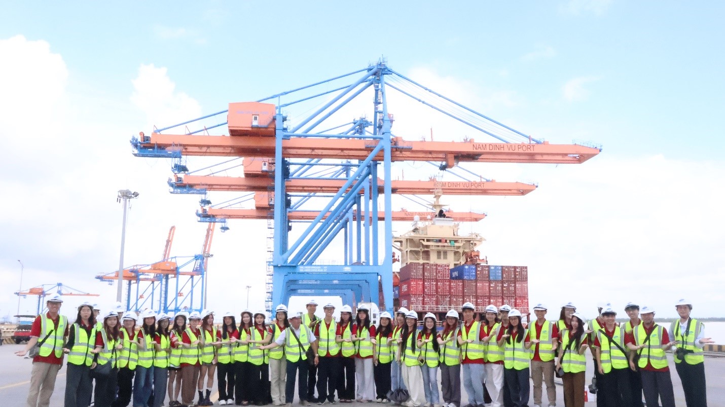 Ngày 04/10/2025, trong khuôn khổ của bộ môn Nguyên lý Logistics và Quản lý Chuỗi cung ứng, các sinh viên K63 chuyên ngành CLC LSCM đã có chuyến tham quan thực tế tại Cảng Nam Đình Vũ và Depot G-Fortune Logistics Hải Phòng. Chuyến đi không chỉ giúp sinh viên kết nối lý thuyết với thực tiễn mà còn mang đến góc nhìn chân thực về thực tế hoạt động logistics trong kinh tế và kinh doanh quốc tế.