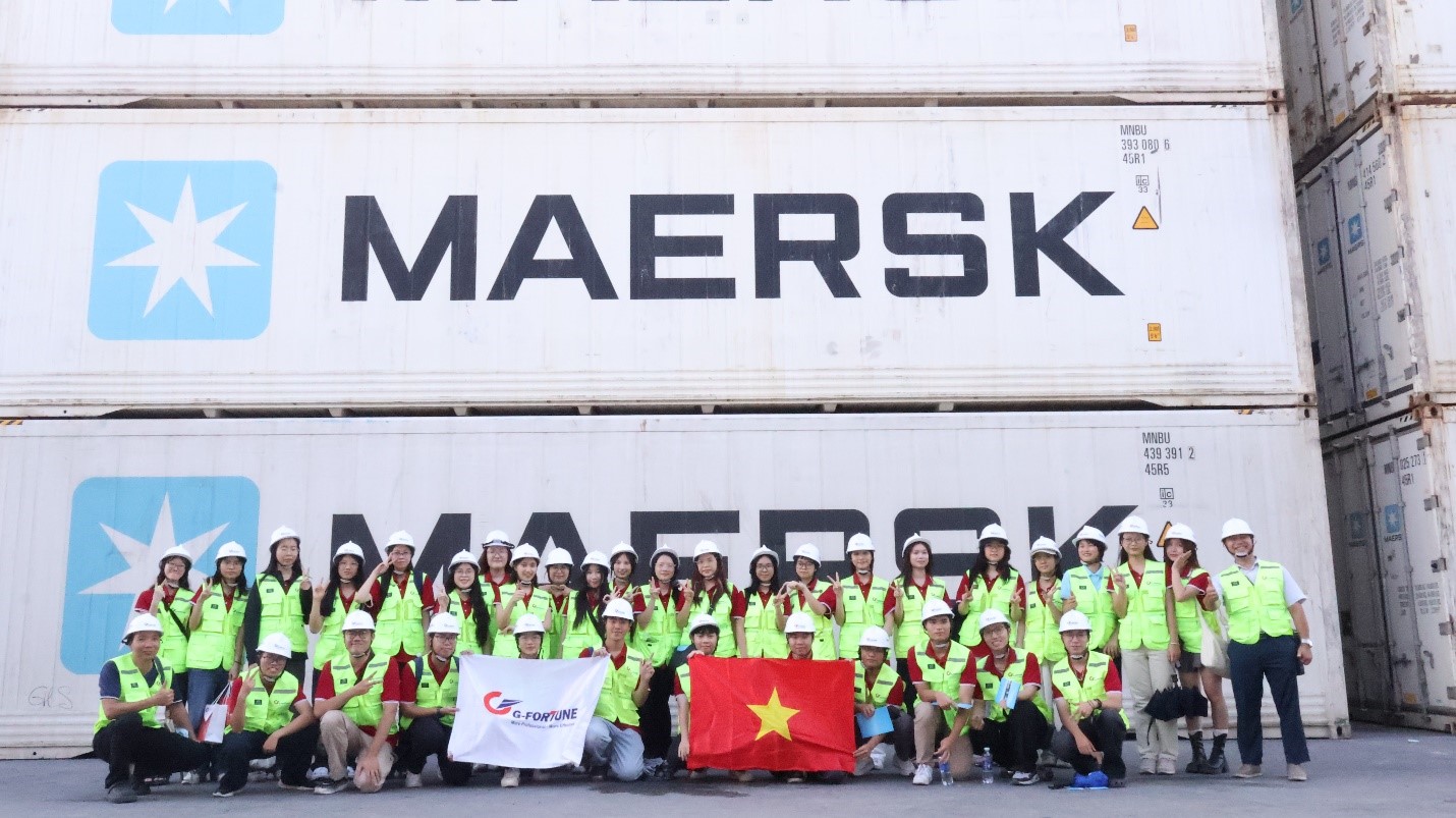 Tại Depot quốc tế G-Fortune Hải Phòng, đoàn sinh viên được tham quan và tìm hiểu hoạt động của một trong những depot hiện đại hàng đầu miền Bắc. G-Fortune Logistics là công ty Liên doanh giữa công ty Greating Fortune Container Shenzhen (Trung Quốc) và dự án sửa chữa container của công ty Cổ Phần Đầu tư và phát triển Cảng Đình Vũ. Với cơ sở vật chất hiện đại, đội ngũ chuyên nghiệp và quy trình vận hành đạt chuẩn quốc tế, G-Fortune là đối tác tin cậy của nhiều hãng tàu và khách hàng trong và ngoài nước.